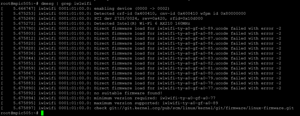 In meinem Beispiel ist zu erkennen, dass iwlwifi-ty-a0-gf-a0* fehlt. Es genügt hier, die neuste Version zu holen und zu installieren.