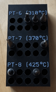 Ich habe auf die schnelle einen Lötspitzenhalter für Weller Magnatsat PT Lötspitzen mit Aufteilung für PT-6, PT-7 und PT-8 konstruiert, damit auf dem Schreibtisch endlich mal wieder mehr Ordnung herrscht und die gewünschte Lötspitze einfach zu finden ist.